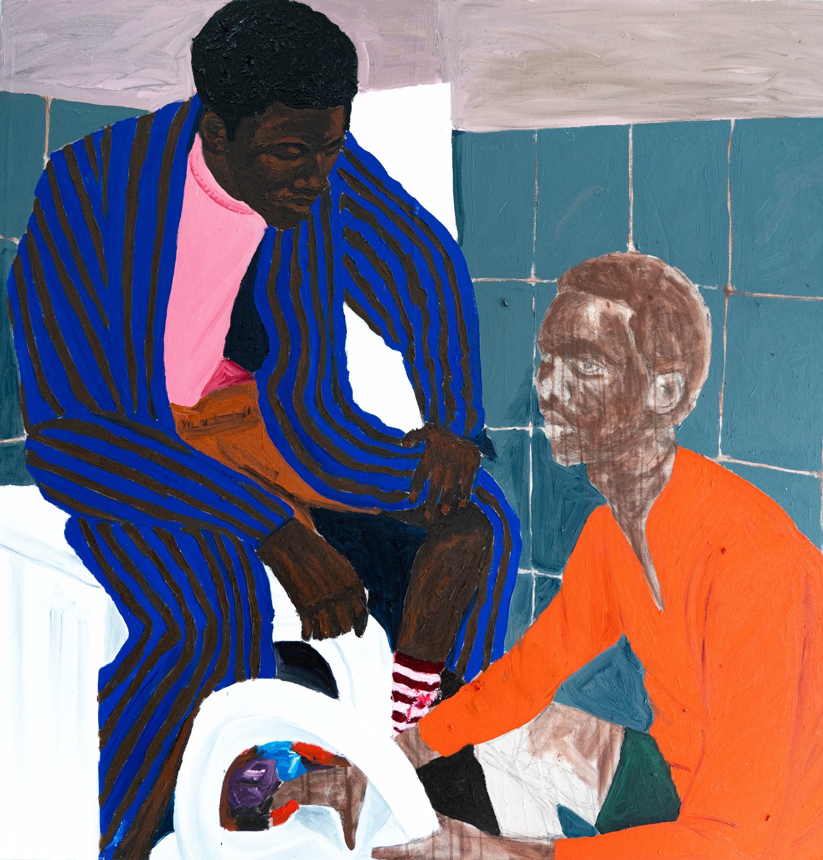 For Eguavoen, painting is not just an aesthetic or formal exercise, but a useful lens to explore the human condition. Indeed, his works address issues such as the global misrepresentation of African populations, political corruption and mental health stigma, challenging the stereotypes that surround his home country. Mental health is in fact a subject that is very dear to the artist, because as he himself explains, depression is often ignored or misunderstood in Africa, and his works seek to open up a space for dialogue, breaking the silence that surrounds this topic.
