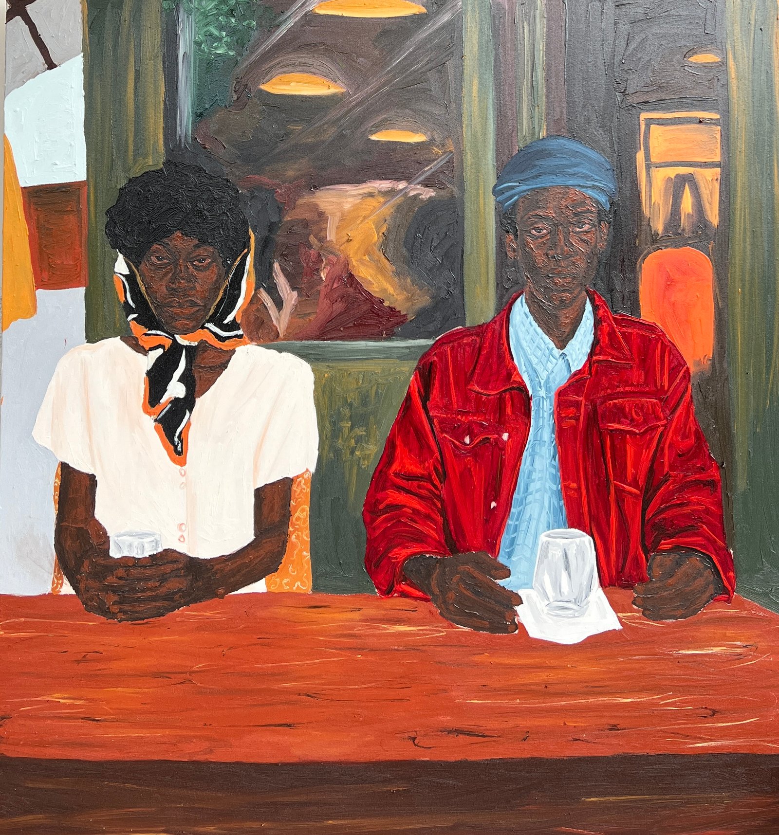 Portraits that are magnetic, that captivate the viewer and demand to be looked at and listened to. His figures communicate with an emotional depth that transcends their formal representation. The subjects' intense gazes, characterised by dark, penetrating eyes, capture the viewer and invite him to question the experiences they embody. The rough skin that envelops the protagonists of his works is a clear reference to the harshness of daily life in Nigeria, to a reality marked by economic deprivation and social pressures.