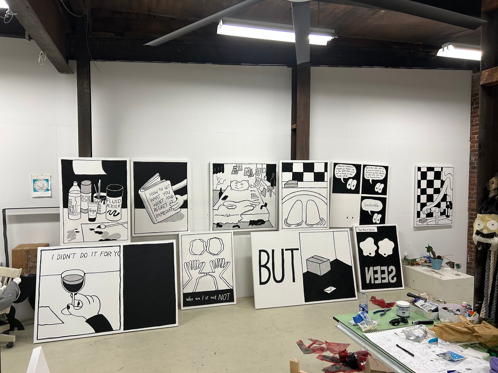 “Dark humour allows us to talk about real topics. If there was an art piece about the agony of failure, it would make most people uncomfortable to experience. But if it uses a lens of dark humour, poking fun at the experience or satirizing it, it becomes more palatable. We can laugh along with the artist and relate to their experience. I think, at its core, that’s what humour allows—the relatability of human experience.”